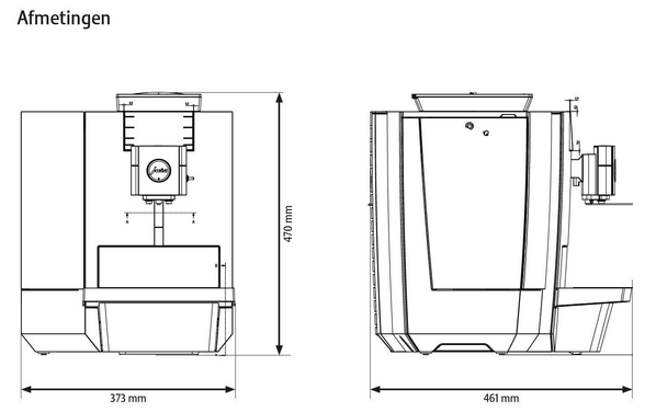 Afmetingen (B × H × D) met bonenreservoir-opzetstuk | 37.3 × 52.4 × 46.1 cm |
