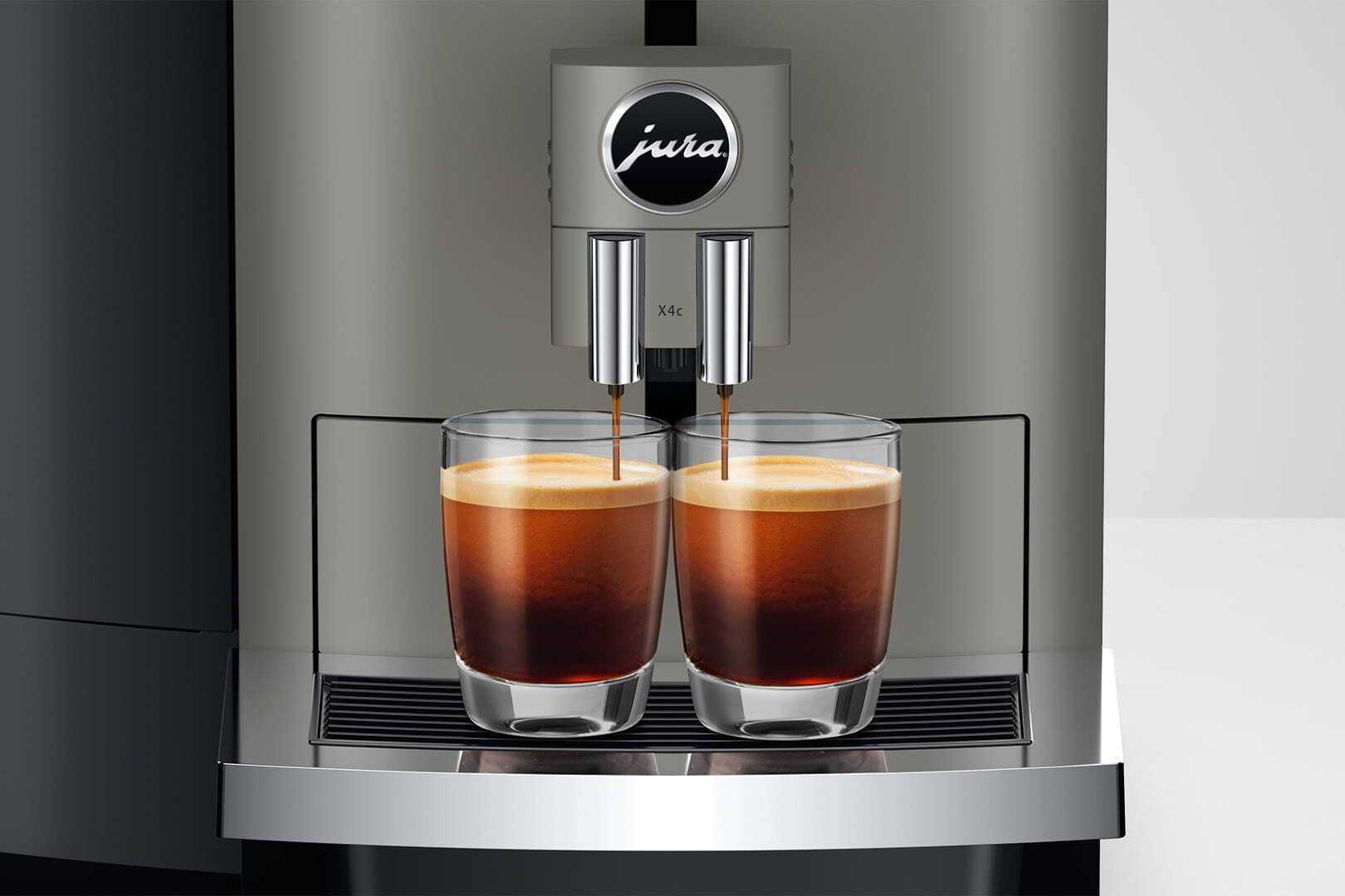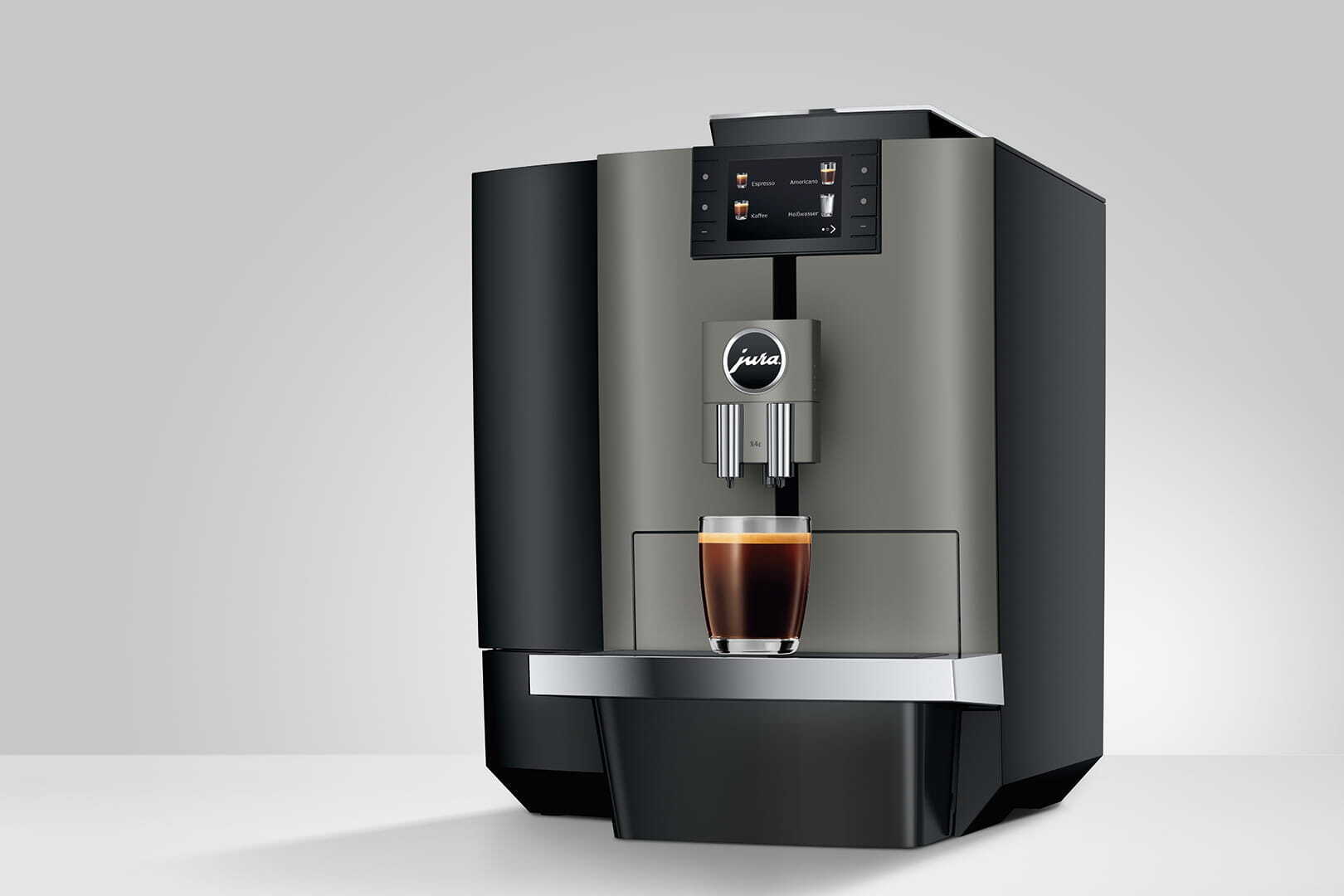 De X4c biedt ongeëvenaard koffiegenot. Hij maalt de koffiebonen met de Professional Aroma Grinder (P.A.G.2) en combineert drie innovatieve bereidingsprocessen van JURA. Met de One-Touch Lungo-functie zijn americano's en lungo's aromatisch en hebben ze een karakteristieke smaak. De populaire café crème profiteert van de 3D-bereidingstechnologie en de espresso smaakt sterk en gebalanceerd dankzij het pulserende extractieproces (P.E.P.®).